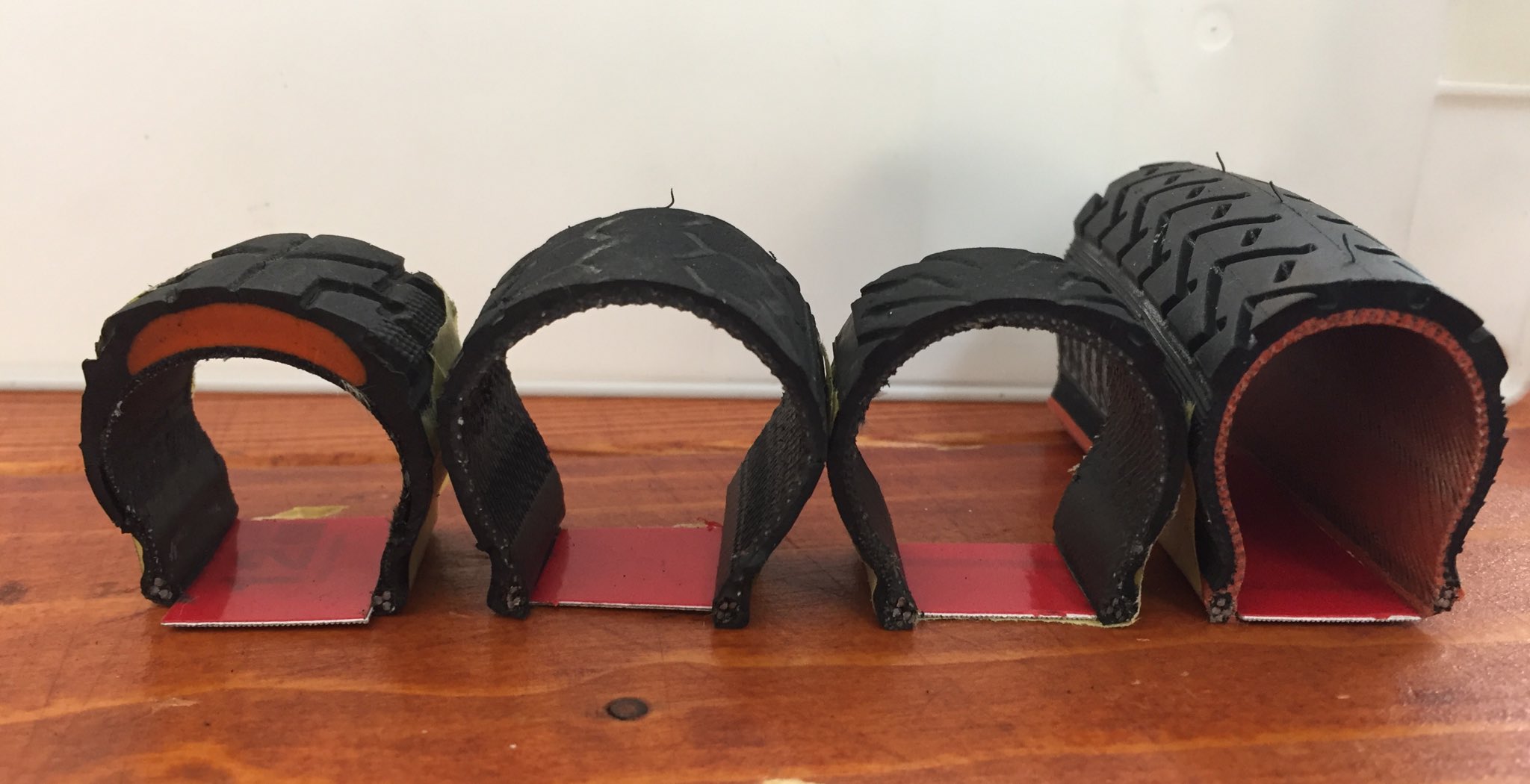 これは修理で外したタイヤを輪切りにしたものです。